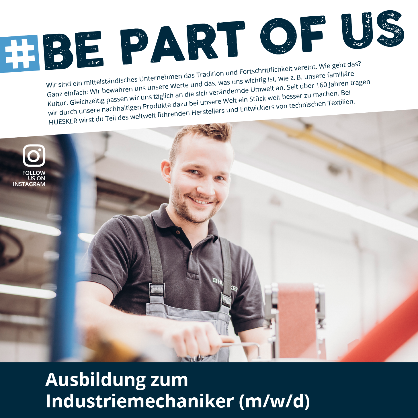 Das lernst du bei uns: Bei der Ausbildung zum Industriemechaniker lernst du bei uns Verantwortung dafür zu übernehmen, dass die nötigen Qualitätsstandards eingehalten werden. Du sorgst für betriebsbereite Maschinen und Fertigungsanlagen, stellst Geräteteile und Maschinenbauteile her und montierst diese zu Maschinen und technischen Systemen. Außerdem gehören die Wartung und Instandhaltung unserer Anlagen zu deinen Aufgaben.